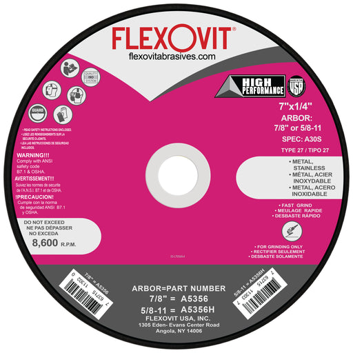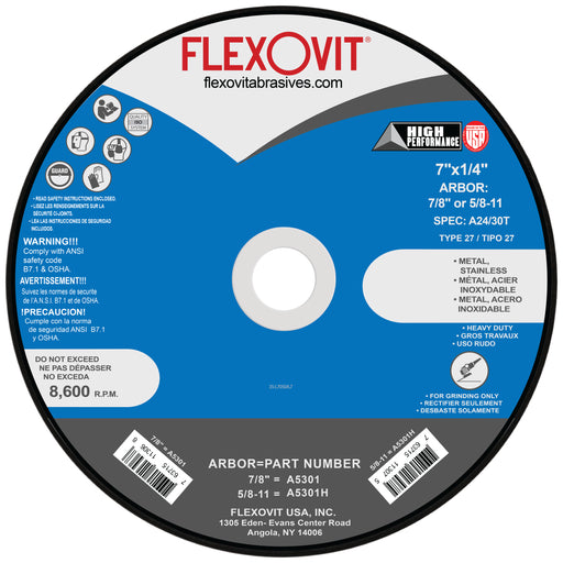 Flexovit HIGH PERFORMANCE Type 27 Grinding Wheels are the hardest working aluminum oxide wheels available. Precision made to ensure smooth & s...