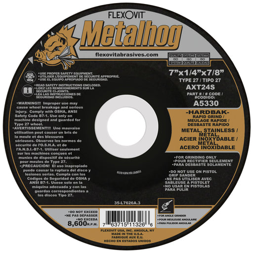 View full detailsMetalhog Type 27 Grinding Wheels incorporate a blend of premium, semi-premium, and standard abrasive grain with custom bond systems. This produces ...