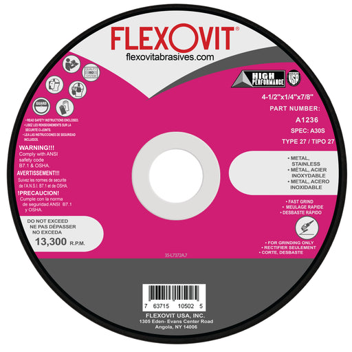 Flexovit HIGH PERFORMANCE Type 27 Cutoff Wheels are the hardest working aluminum oxide wheels available. Precision made to ensure smooth and safe ...