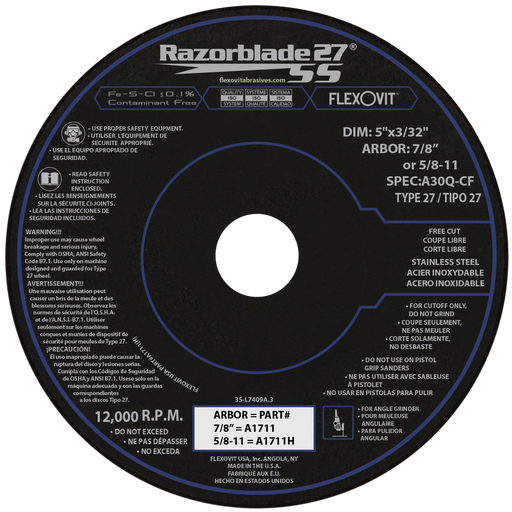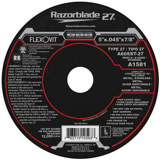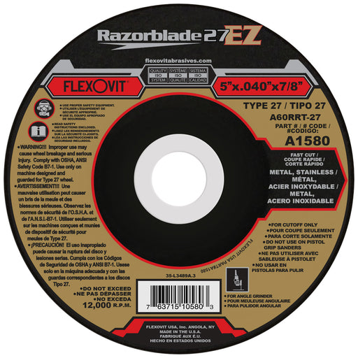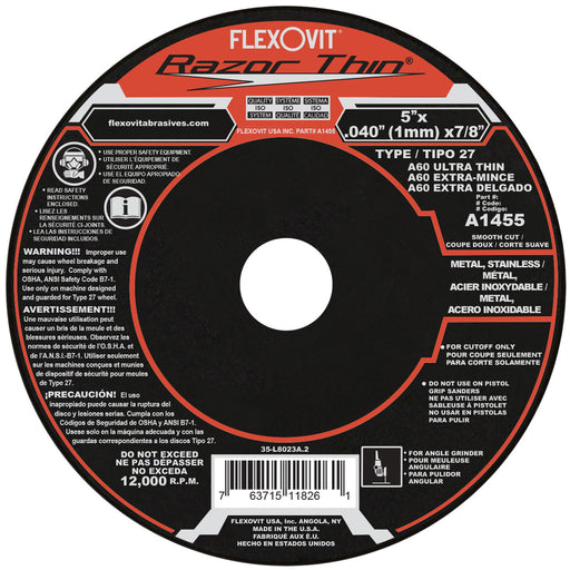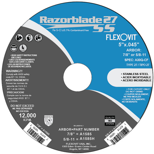 View full detailsFlexovit RAZORBLADE Type 27 thin cutoff wheels are the best performing blades in the industry and an indispensible tool for the metalworker in both...