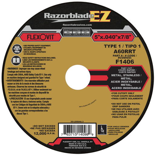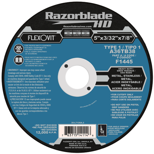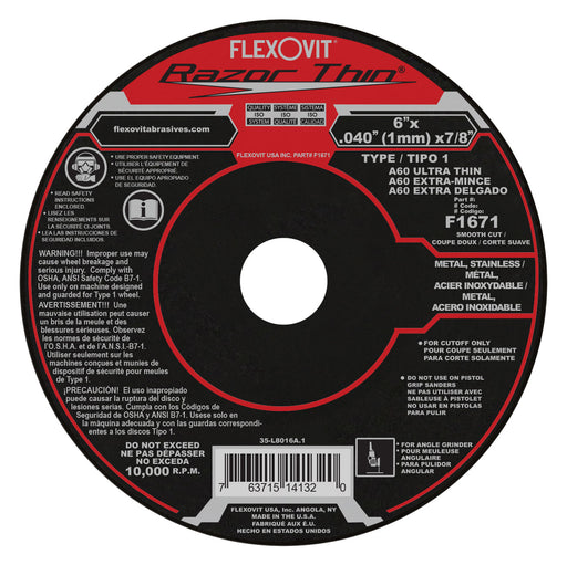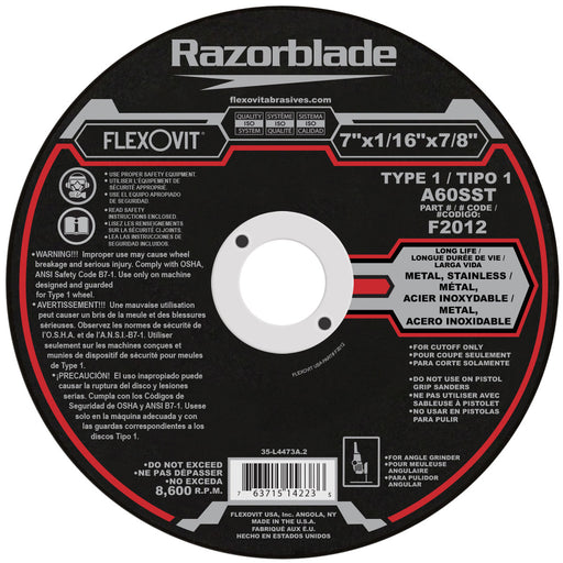 View full detailsFlexovit RAZORBLADE Type 1 Thin Cutoff Wheels for angle grinders are an indispensible tool for the metalworker in both production and maintenance ...