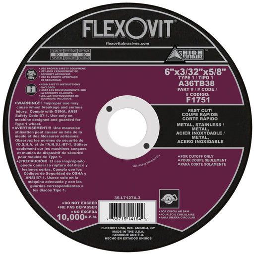 View full detailsFlexovit HIGH PERFORMANCE Circular Saw Wheels are the hardest working aluminum oxide (metal cutting) wheels available.Fast, easy cutting of shapes ...