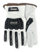 Hard-wearing full-grain goatskin leather offers exceptional strength and dexterity. Heavy duty rubber on back of hand, fingers and wrist provides impact protection. Drivers style with ergonomic inset thumb for superior flexibility and comfort. Stitched with Kevlar® thread provides strength and durability. Snug-fitting shirred elastic wrist keeps out dirt and debris with slip-on style cuff for quick and easy removal.