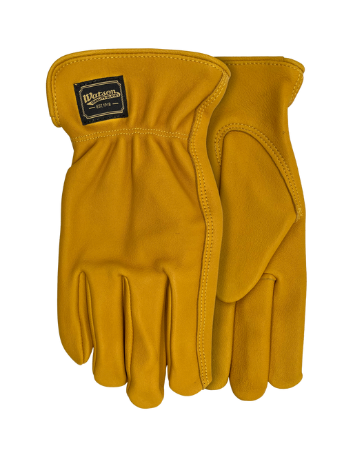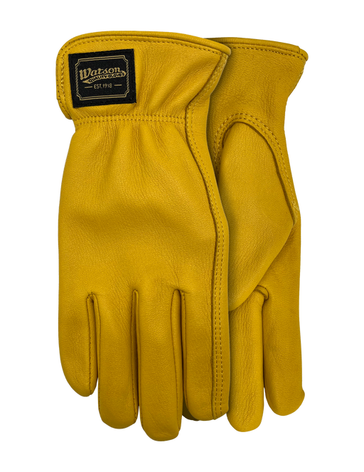 Economy full-grain deerskin leather, drivers style with inset thumb, shirred elastic wrist, slip-on style cuff