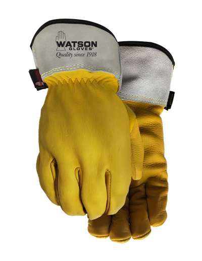 View full detailsA Watson Classic, premium full-grain cowhide leather, cotton drill back, outside elastic wrist, rubberized safety cuff