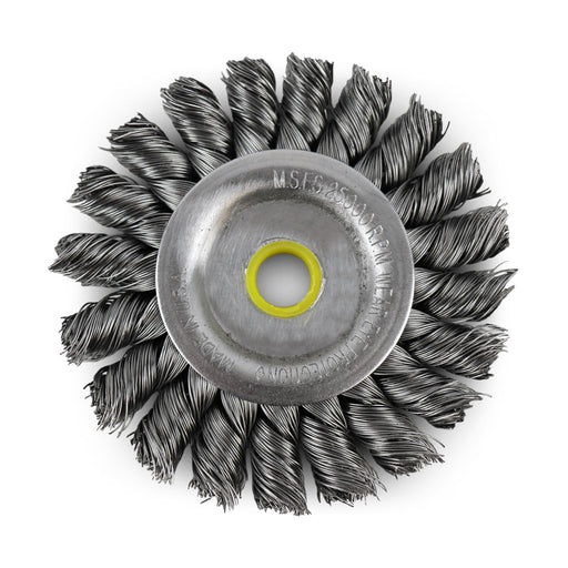 FLEXOVIT - HIGH PERFORMANCE WIRE CUP BRUSH/CLAMSHELL .020 CARBON KNOTTED 3-1/2X5/8-11 - C1485P