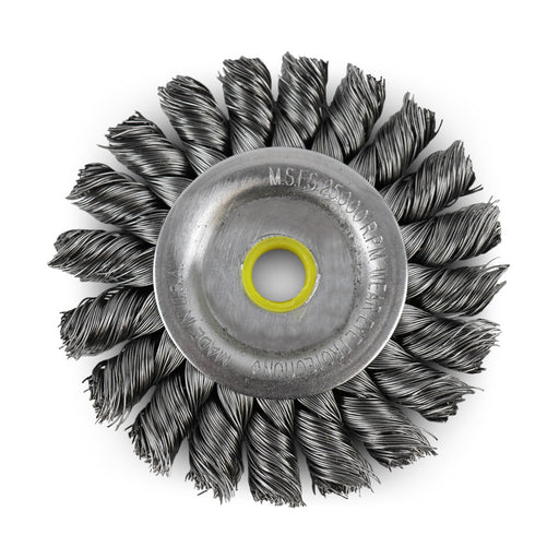 FLEXOVIT - HIGH PERFORMANCE WIRE CUP BRUSH/CLAMSHELL .020 CARBON KNOTTED KNOCK-OFF BRIDLE 6X5/8-11 - C1642P