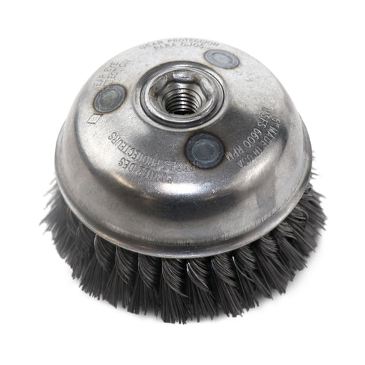 FLEXOVIT - HIGH PERFORMANCE WIRE CUP BRUSH/CLAMSHELL .020 CARBON KNOTTED 6X5/8-11 - C1640P