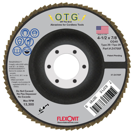 View full detailsFlexovit ZIRCOTEX Premium Type 27 and Type 29 Flap Discs are made with premium zirconia alumina abrasive cloth backed by a high strength fiberglass...