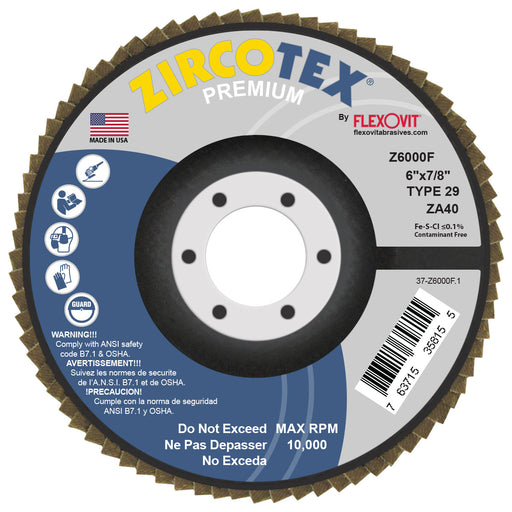 FLEXOVIT - ZIRCOTEX® 6" X 5/8"-11 120 GRIT TYPE 29 SPIN-ON FLAP DISC - Z6020FH