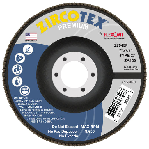 FLEXOVIT - ZIRCOTEX® 7" X 5/8"-11 120 GRIT TYPE 29 SPIN-ON FLAP DISC - Z7020FH