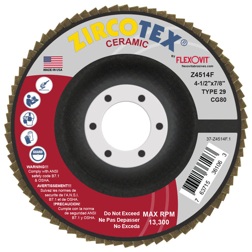 FLEXOVIT - ZIRCOTEX® CERAMIC 4-1/2" X 7/8" 80 GRIT TYPE 29 FLAP DISC - Z4514F