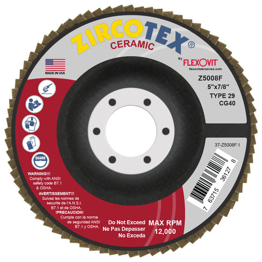 FLEXOVIT - ZIRCOTEX® CERAMIC 5" X 5/8"-11 40 GRIT TYPE 29 SPIN-ON FLAP DISC - Z5008FH